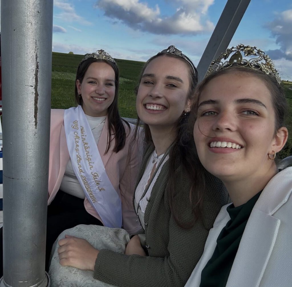 Zur Ingelheimer Rotweinkönigin wurde Sara Weitzel gekrönt. Das Amt der Rotweinprinzessin übernehmen Alina Braig und Marit Klumb.