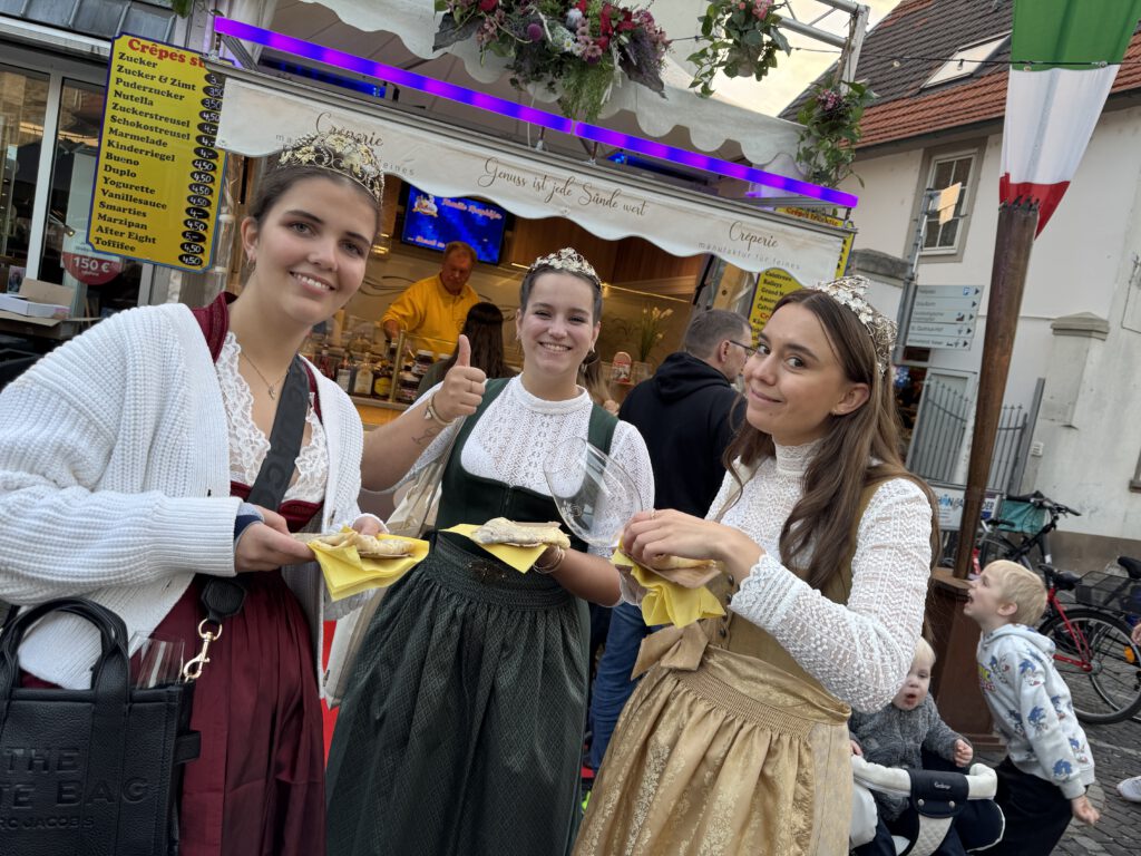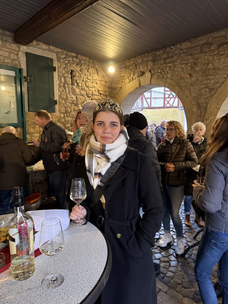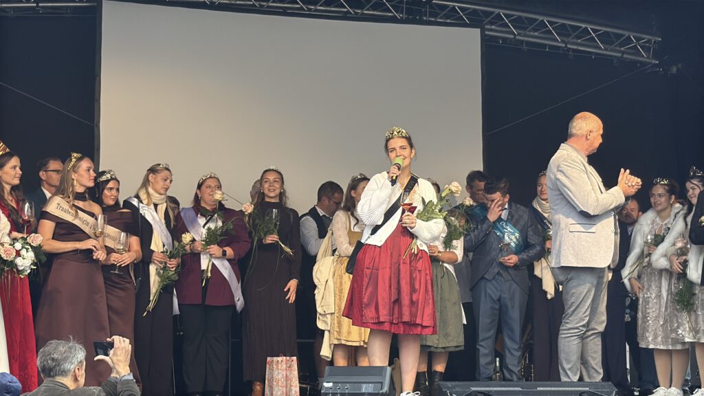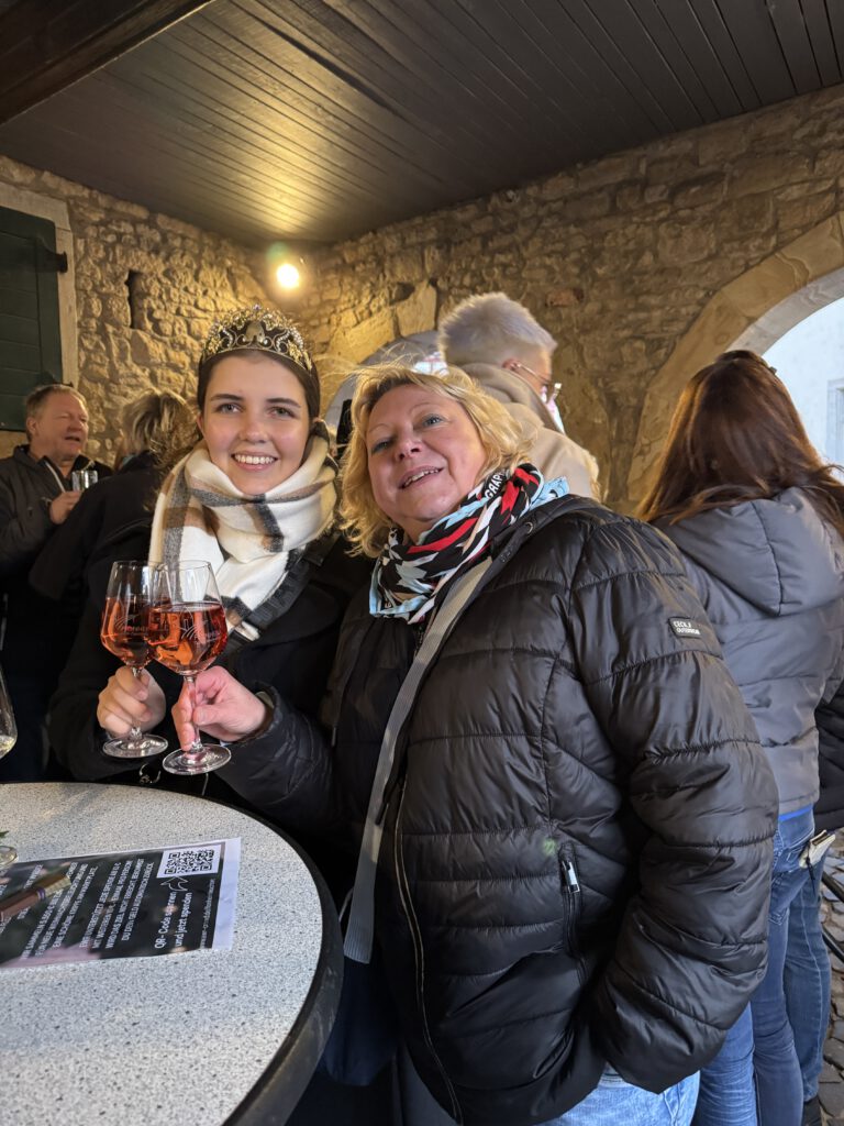Unsere VG-Weinkönigin Martha I. hat meine Grüße überbracht und mich würdig vertreten — dafür ein herzliches Dankeschön!Da meine Amtszeit zwei Jahre andauert, freue ich mich bereits auf den nächsten Weinmarkt, auch wenn ich dann meine Krone an meine Nachfolgerin übergeben werde.